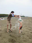 午前中は外遊びをたっぷりするようで、この日は水鉄砲で水遊びをしてびしょぬれになり、幼稚園の服を借りて帰宅。