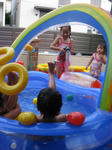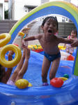 晩御飯が済むと17時過ぎだっていうのにお庭のプールへ。