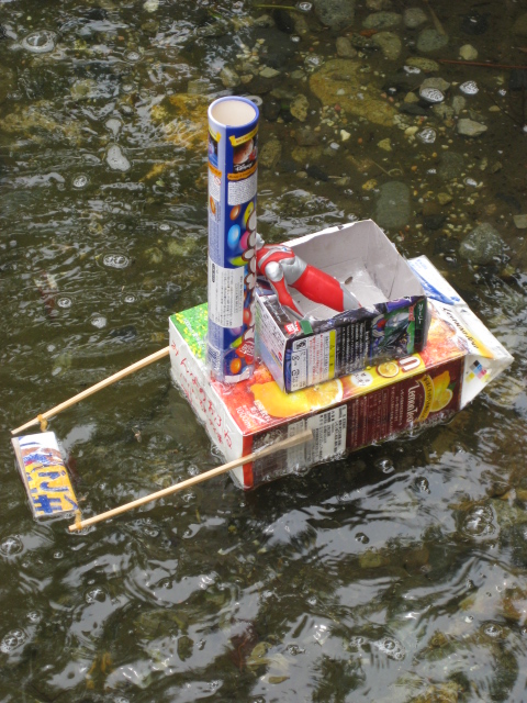 こないだだいちと見ていた教育テレビの工作の番組で、牛乳パックで作る船の作り方を覚えていたから作ってみることに。