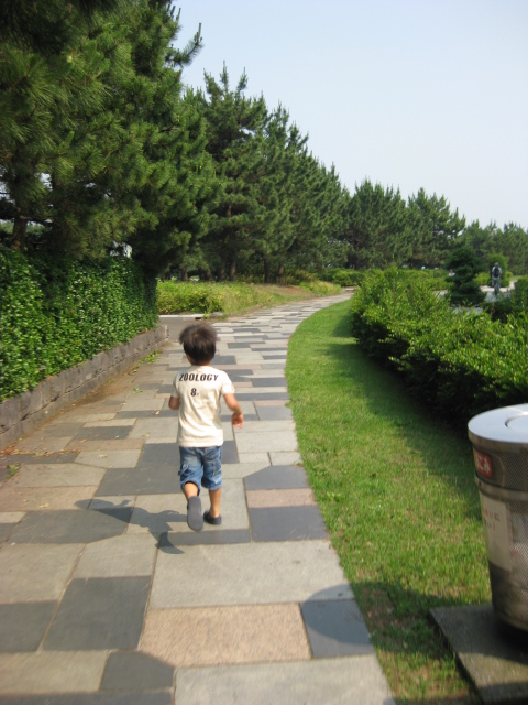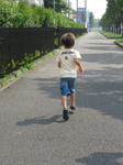今回珍しくだいちはパパの自転車の後ろに乗って出発したんだけど、何を思ったのか途中から「マラソンする!」と言い出して、すごい勢いで走りだした。