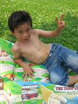 広い芝生の広場で大人は持参のビール。だいちはおやつ。