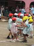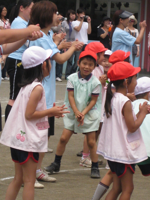 最後はフォークダンスで、最初に年少さんと踊り、次は年中さんと一緒に踊った。
