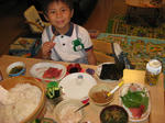 だいちはお肉を焼き出したら肉に向かって手を振って歓迎(笑)