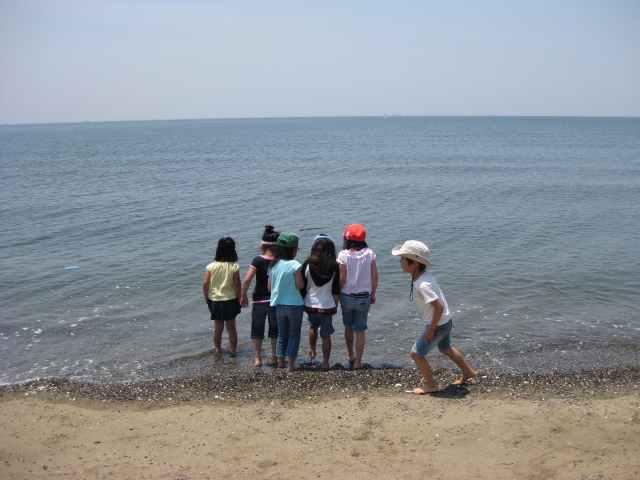 女の子チームは綺麗な石を拾ったり、貝を拾ったりしてた。