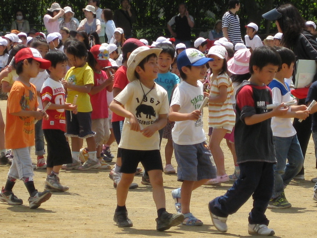 大人数で横並びでだだだっと走って、ゴールで小学生が作ってくれた塗り絵をもらった。