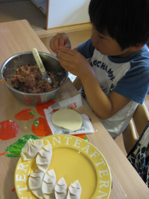 だいちが包んだのはワンタンのようだったけど、参加した餃子は美味しさも格別だったかな。