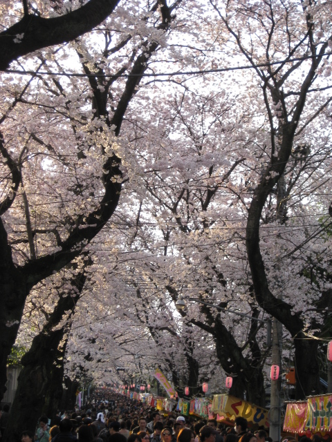 桜が満開で、平日なのにたくさんの人が見に来ていた。