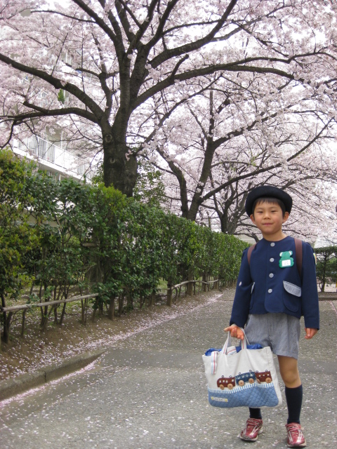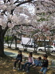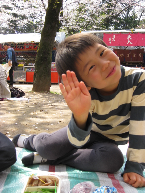 公園は桜が満開。花びらがときおりひらひらと舞い降りてきてとってもきれい。