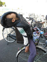 帰りは自転車に乗りながら持参していたおにぎりをぱくつき、エネルギーを補充。