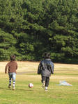 2人でボールを蹴りながらどんどん遠くまで行ってしまう。