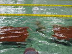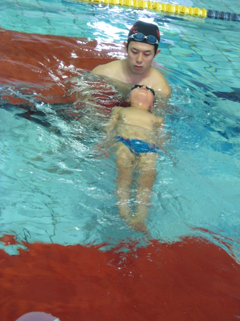 でもプールに入る寸前に「勇気を出して足をぴょんってやって(浮いて)みてごらん。」とアドバイスもしたりして。