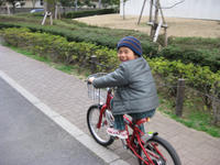 幼稚園が終わってから、珍しく早く戻ってきて自転車の練習。