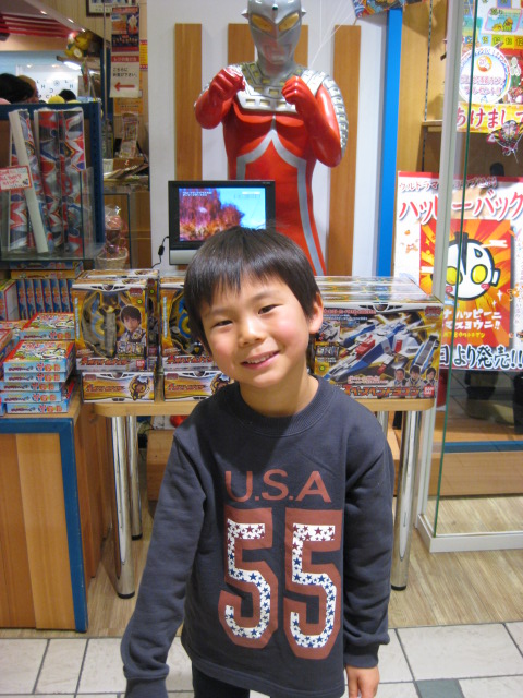 以前もこのあたりに連れて来たことがあったけど、その頃はウルトラマンにまったく興味が無くトミカのお店で遊んだのに、今回はトミカには目もくれずウルトラマングッズの溢れるお店に夢中になっていた。