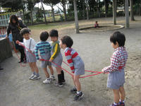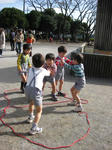 クリスマス会では子ども達にサンタさんから(笑)お菓子などの入ったプレゼントが手渡され、ママ達にもお菓子が配られて約3時間おしゃべりしたり、子ども達はそれぞれ自由に遊んで過ごした。