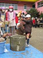幼稚園でのクリスマス会ではサンタさんが登場したようだ。