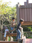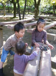 公園に着くと3人で仲良く遊んで親いらず。
