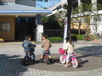 自転車で少し離れたアスレチックのある公園までたっくんと一緒に行くところだったりんちゃん。
