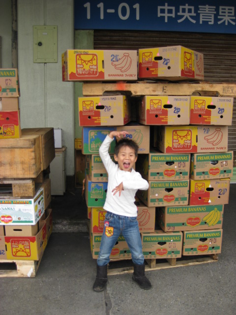 市場では洋ナシを試食したらだいちが気に入ったので購入。あとはどんこや削りたてのかつおぶし、わかめなどを買った。