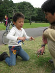近くの公園に移動してサッカーをしていたら、幼稚園のお友達が通りがかって一緒にしばらく遊んだ。