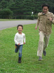 パパとかけっこの練習&競争。