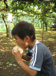 パパの実家に遊びに行き、じぃじ、ばぁばと一緒に梨狩りへ。