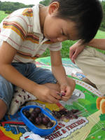 だいちは虫が得意じゃないからへっぴり腰で、なんとかつかんでみたけど渋い顔。