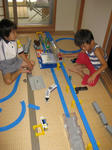 だいちはまた最近プラレールで遊ぶようになり、少し難しい線路を作れるようになって、線路の作成に没頭した。