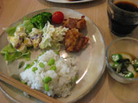 ネットのお料理サイトに載っていた”サツマイモのcafeサラダ”は、ゆでたさつまいもにマヨネーズ、コンデンスミルク、粒マスタード、塩コショウの調味料を合わせたものを和えたものなんだけど、ちびちゃんたちに好評だった♪
