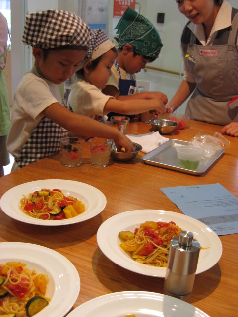 テンション低いまま、ゆうき君と一緒に東京ガス主催の「親子お料理教室」に参加。