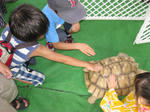 うさぎやモルモットのいる場所を縦横無尽に歩き回っていたのが大きな亀(!)