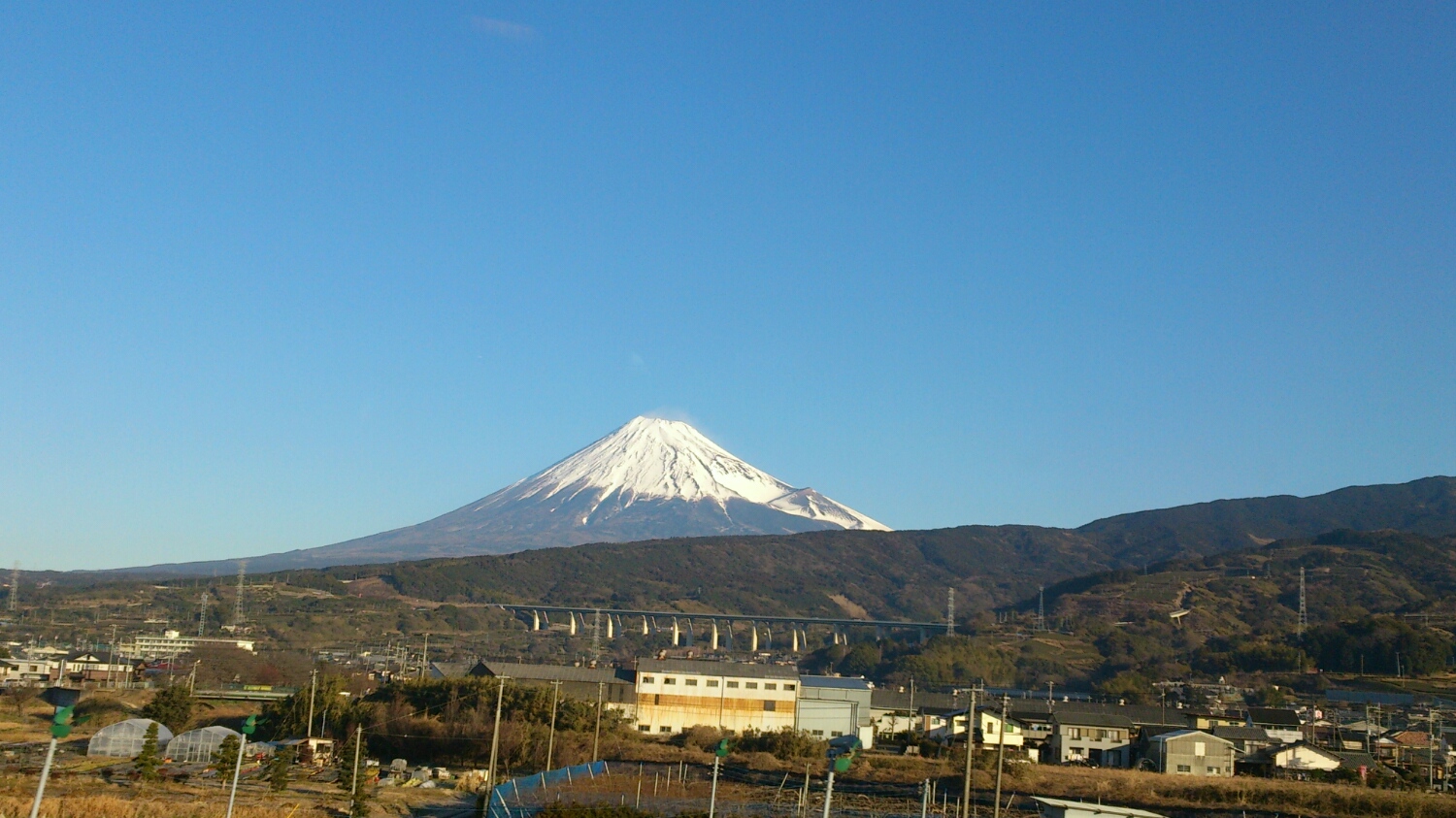 空気が澄んでいるから新幹線の窓から見える富士山がキレイだった。
