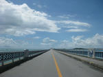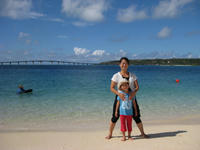 両側に透明&エメラルドグリーンの海。空は真っ青。大きな雲がどかーんと浮かんでいて、同じ日本の景色とは思えない。