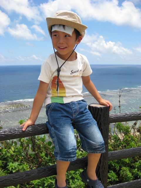 西平安名崎の展望台に立ち寄り、パパと交代でまたまたすごい景色を堪能。