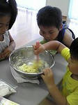 今日は「真夜中の台所」という絵本のお話に出てくるケーキ作りの実体験で、子ども達でスコーンを作ったようだ。