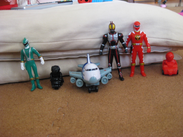 今だいちの家遊びのお気に入りはジグソーパズル、ブロック、ソファから布団めがけての大ジャンプ、下の写真のちっこいおもちゃ(笑)