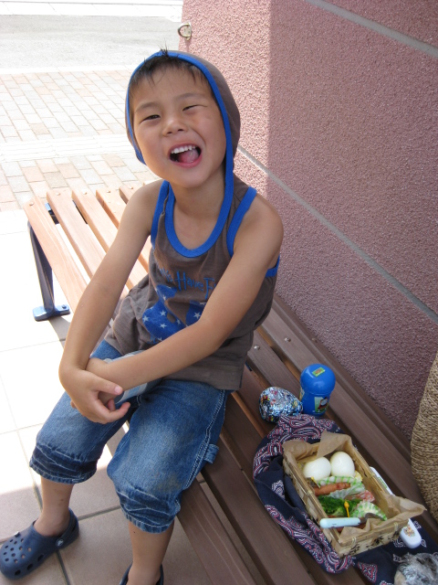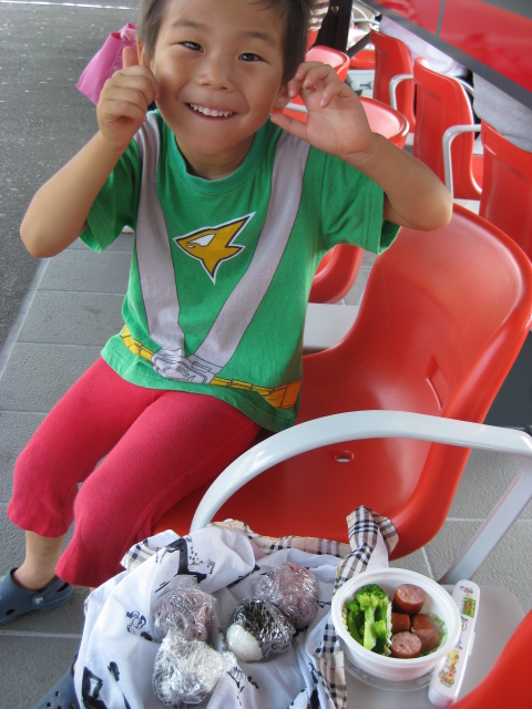 日陰のベンチを見つけてお弁当。