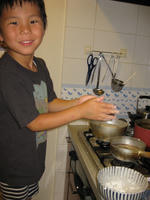眠気覚ましに家に帰ってからデザートの白玉作りを一緒にやってみた。