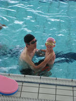 浅い子供用のプールで、パパまでの短い距離を顔をつけてバタ足で泳いだりもしていた。