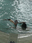 パパが50mの往復を泳ぎに行くときは、プールサイドで膝をかかえてお山座りして待っていた☆