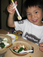 だいちの鍋には大好物のすいとん粉で作るお団子も入れた。