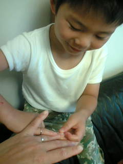一緒にスーパーに買い物に行き、ゴーオンジャーの魚肉ソーセージを買ってあげたら主題歌を歌いながらご機嫌に帰宅のゴーオンジャーバカのだいち(笑)