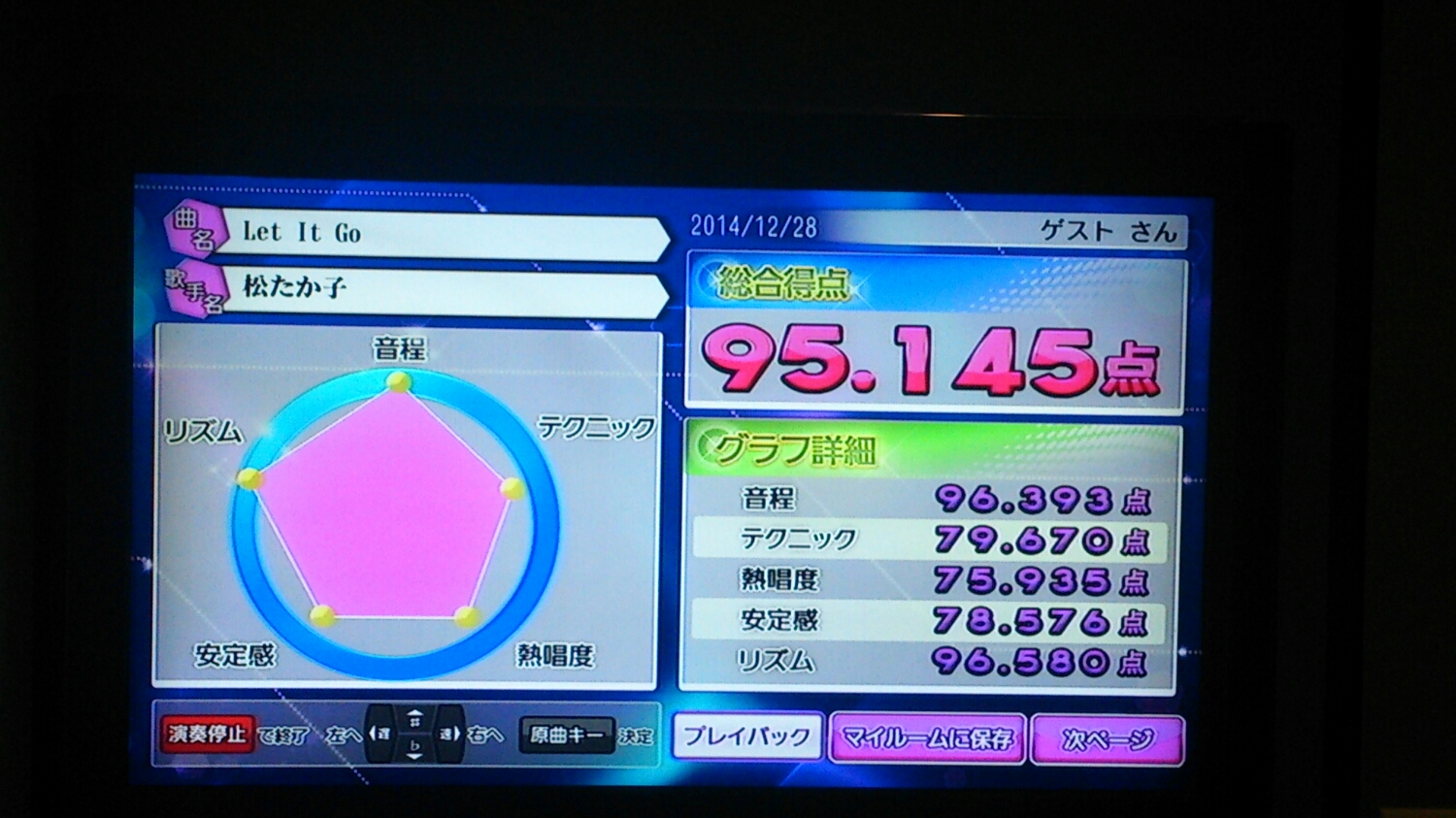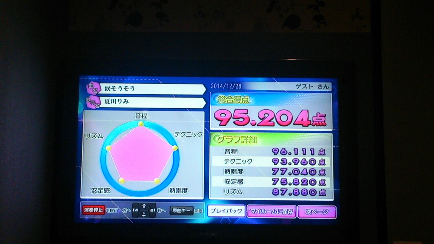 得点の出るカラオケがしたいと言って、初めて採点してもらった。