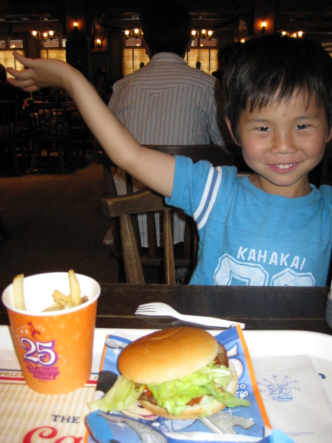 ドナルドのショーを見ながらハンバーガーなどを食べられる。