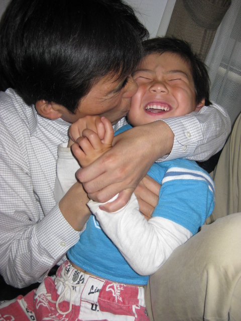 戻ってきてパパを起こしてからはだいち念願の”戦いごっこ”