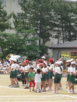 朝食を済ませ、目の前の小学校の運動会を見に行った。