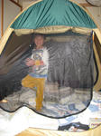 部屋遊びにも飽きてきた頃、キャンプごっこする?とピクニック用のテントを出してあげたら喜んだ。
