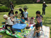 ゆうくんが「みんなで外で食べると楽しいね~!」と言った。