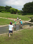 子ども達は近くにある川に夢中。