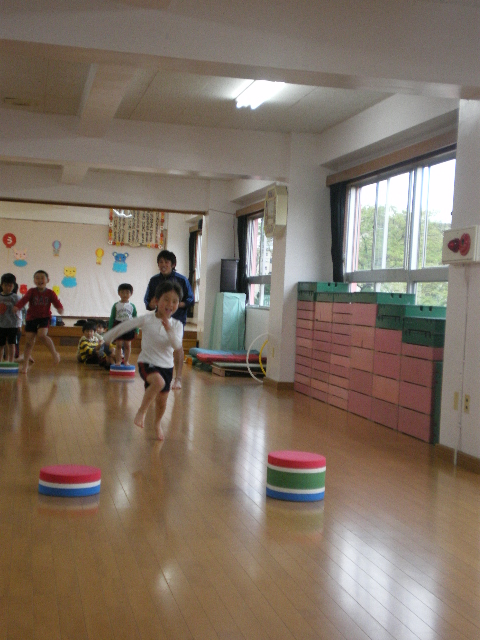 だいちはお迎えのあと、仲良しのお友達も勢揃いして幼稚園内でやっている体操教室の体験をした。