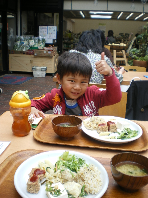 着いた頃にはお腹がすいてたから、地下にあるオーガニックのバイキングのお店でテラスランチ☆